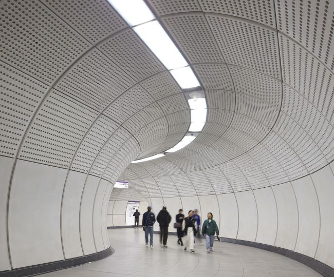 The network is an exemplar of inclusive design, not only through the application of step-free access throughout, but through sensitive considerations to each sensory experience. Interventions such as hiding acoustic mats behind cladding to absorb excess noise, removing unnecessary fixtures and fittings and employing a restrained colour palette help to create a sense of calm for those who find underground travel overwhelming.