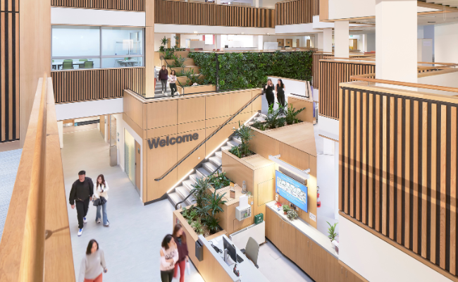 AtkinsRéalis was appointed lead architect and multi-discipline design team for the Clarice Pears building – the new home for the Institute of Health and Wellbeing, and cornerstone of the new campus project. Our approach was rooted in human-centric design, ensuring the building would be functional, welcoming, and adaptable to the evolving needs of its users.